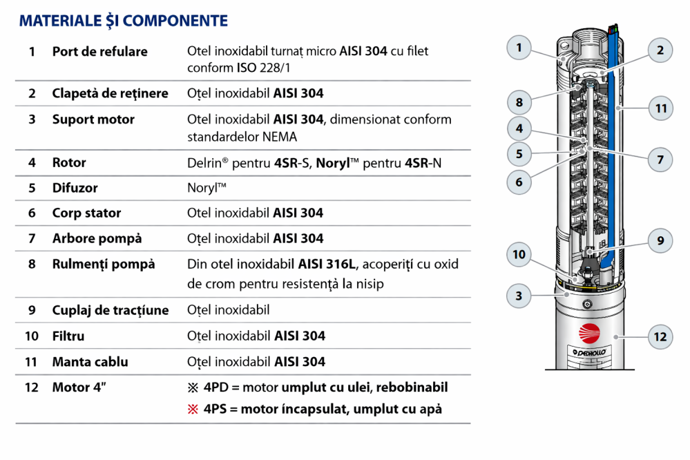 Sursă: fișa tehnică Pedrollo 4SR 50Hz (PDF)